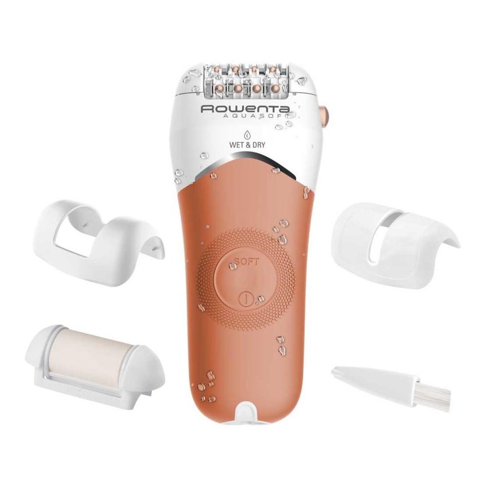 Depilácia už nemusí byť náročnou úlohou a nemusí dráždiť vašu pokožku! Patentovaná technológia *Anti-Irritation zaisťuje jemnejšiu a pohodlnejšiu epiláciu vďaka exkluzívnemu materiálu hlavy epilátora, ktorý obmezuje trenie s pokožkou. Okrem toho je tu možnosť nastavenia Soft, ktoré ponúka nižšiu rýchlosť rotácie pre veľmi jemnú epiláciu. Vďaka ergonomickému dizajnu dámsky epilátor Aquasoft odstraňuje dokonca aj najkratšie chĺpky (0,5 mm) rýchlo, ľahko, precízne a bez poškodenia, čím zabezpečí optimálnu účinnosť v jednom ťahu. Je 100 % vodotesný, a teda ideálny pre použitie vo vani alebo v sprche, čím vďaka upokojujúcim vlastnostiam vody zabezpečuje neuveriteľne jemnú pokožku. Jeho dizajn Skin Respect zahŕňa masážne guľôčky, ktoré pomáhajú znižovať citlivosť pokožky a rýchlosť rotácie pre optimalizáciu počtu zásahov. Výrobok dopĺňa peelingový valček a nadstavce pre precíznu epiláciu a ošetrenie pokožky i v tých najcitlivejších zónach. S epilátorom Aquasoft získate sebadôveru vďaka dokonalej a krásnej pokožke.