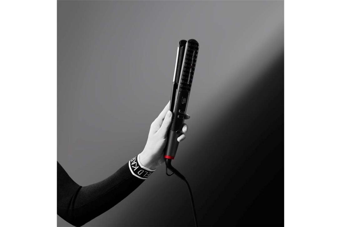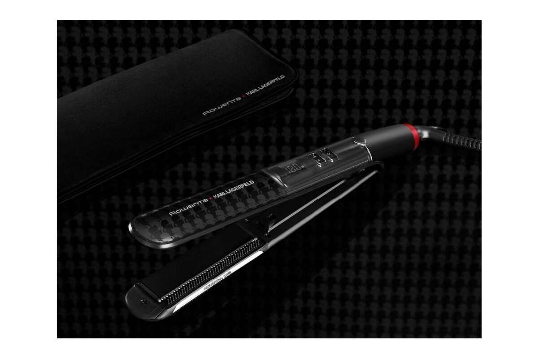 Žehlička na vlasy Rowenta x KARL LAGERFELD K/Pro Stylist má integrovaný hrebeň a povrch Keratin & Glow vyhladzuje a upravuje vlasy tak, aby vyzerali ako od kaderníka. Jedným ťahom dosiahnete elegantné a lesklé vlasy vďaka povrchu Keratin & Glow a ionizátoru. Používateľsky ústretový LCD displej a nastavenia teploty umožňujú jednoduché a profesionálne žehlenie pre ešte hodvábnejšie vlny.