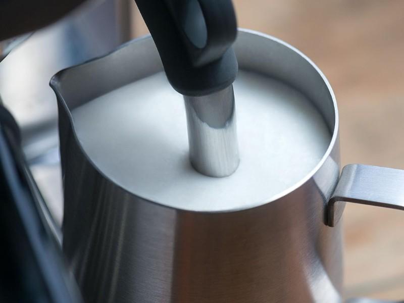 Kanvička na napenenie mlieka Sage BES003 je ideálnym pomocníkom na ohrev a napenenie mlieka. Kanvička má zabudovaný teplomer, ktorý vám pomôže presne určiť teplotu mlieka, vďaka čomu sa mliečna bielkovina už nikdy nespáli a mlieko sa neznehodnotí. Objem kanvičky predstavuje takmer pol litra, a je vybavená dizajnovým náustkom, ktorý vám pomôže pri príprave latte art.