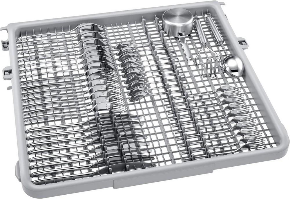 Od hrncov a panvíc až po poháre a šálky – nový dizajn umývačky vám uľahčí vkladanie riadu. Prostredný stojan má nastaviteľný počet hrotov v troch polohách, ktoré jednoducho prispôsobíte pomocou páčky. Praktický je aj držiak na poháre. V spodnom stojane možno hroty vpredu úplne sklopiť, takže nebudú prekážať pri vkladaní väčšieho riadu, a sklopením zadných hrotov získate ešte viac miesta.