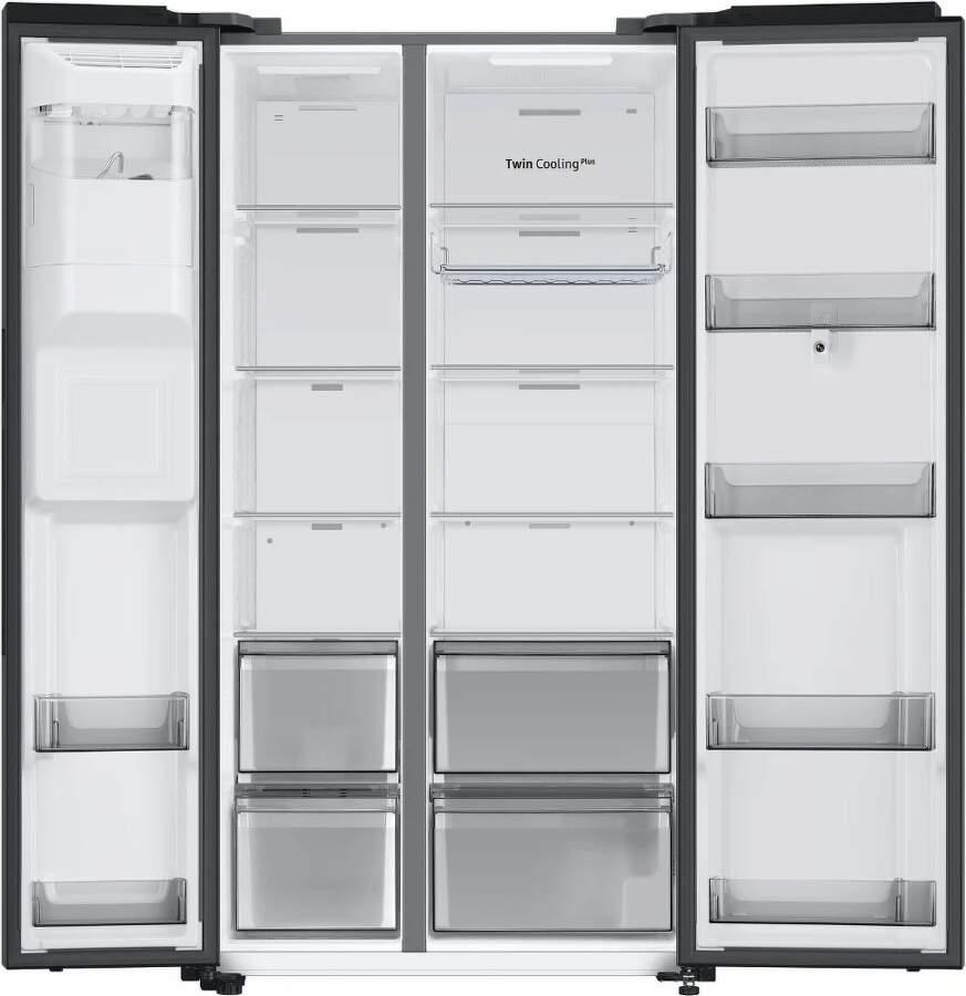 Americká chladnička, Celkový čistý objem 614 L, Ročná spotreba energie 346 kWh, Klimatická trieda SN-ST, Maximálna hlučnosť 36 dB