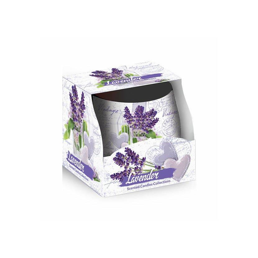 Vonná sviečka, Vonná sviečka v skle s príjemnou vôňou levandule.