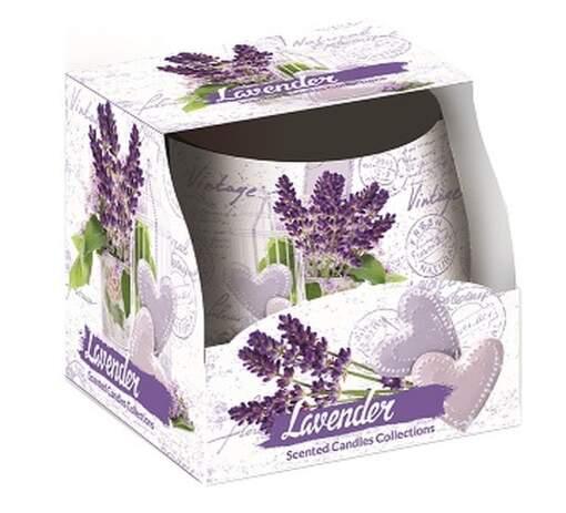 Vonná sviečka, Vonná sviečka v skle s príjemnou vôňou levandule.