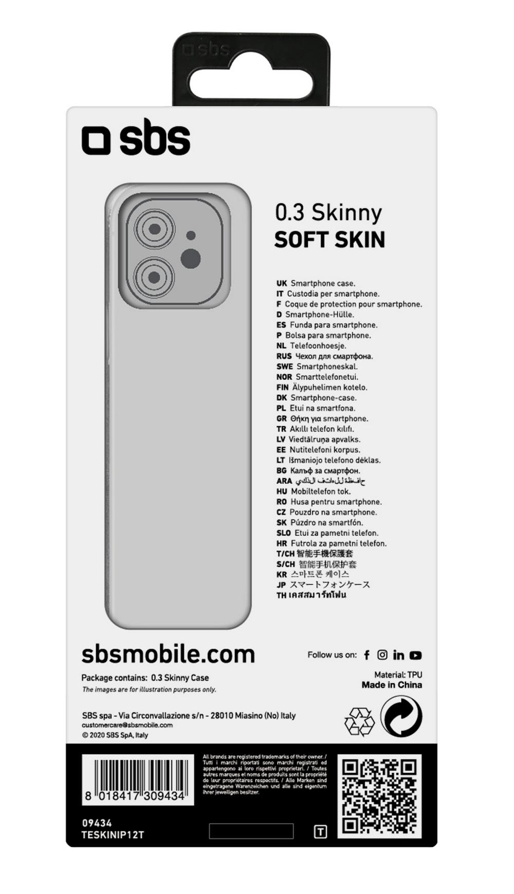 Púzdro pre iphone 12, Skinny je flexibilné puzdro prémiovej značky SBS Mobile. Je vyrobené z mäkkého ale odolného silikónu, ktorý dokonale ochráni Vaše zariadenie proti škrabancom a nárazom pri minimalistickom prevedení.