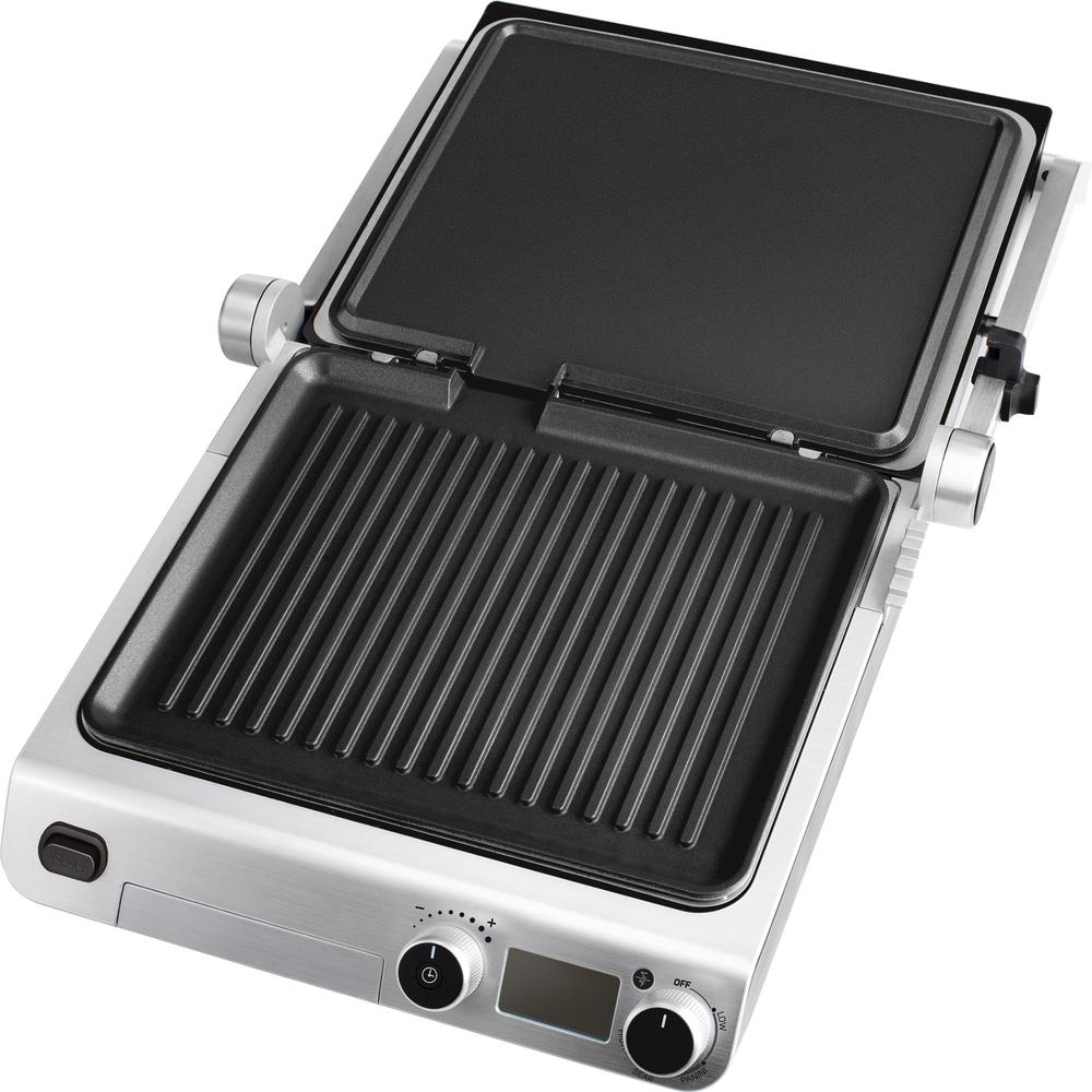 Kontaktný gril, Príkon 2 000 W, 3 prevádzkové polohy (uzavretá/otvorená 90°/otvorená 180°), Rozmery grilovacej dosky (dĺžka × šírka): 30 × 25 cm.