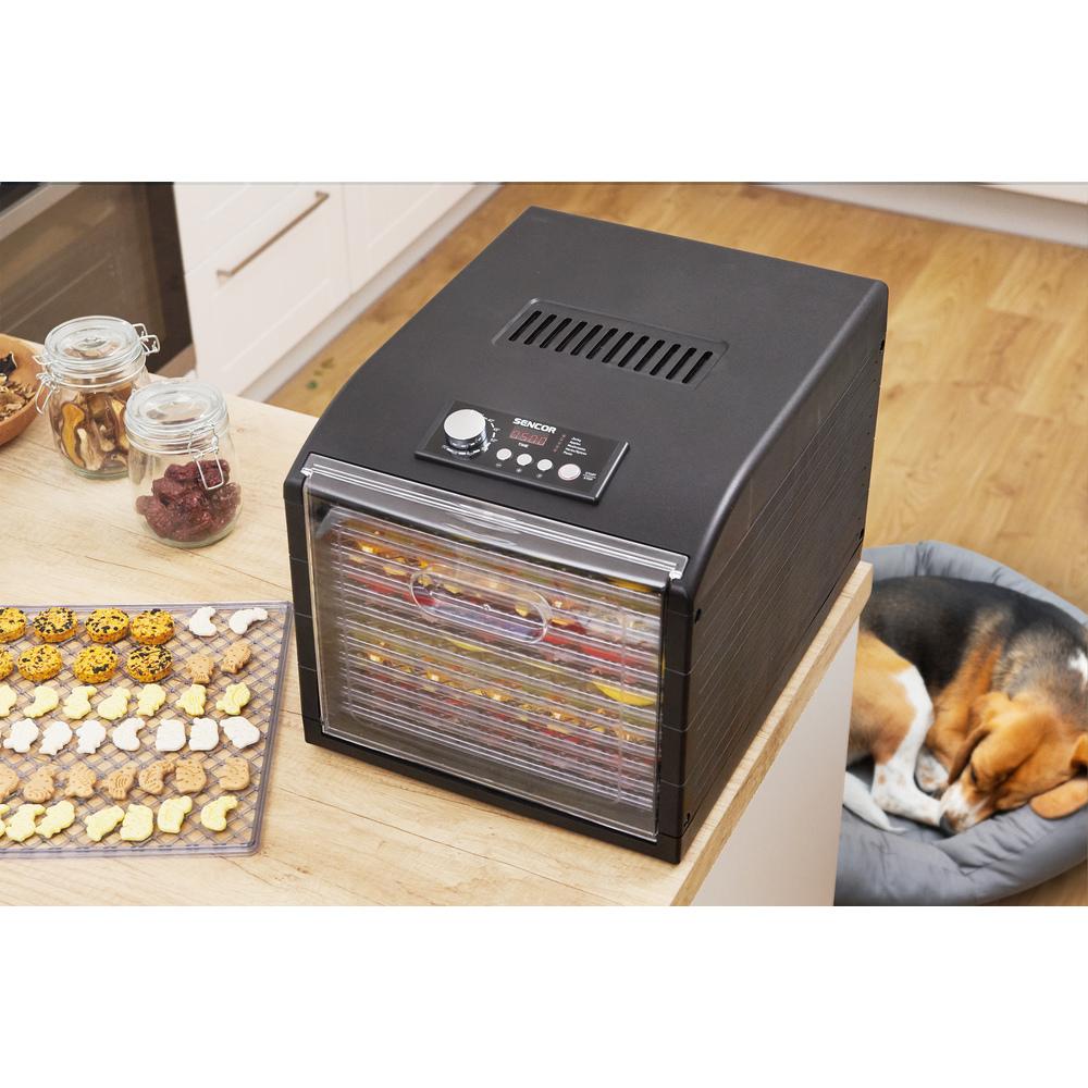 - Priehľadné dvierka a podnosy umožňujú okamžitú vizuálnu kontrolu nad stavom sušenia