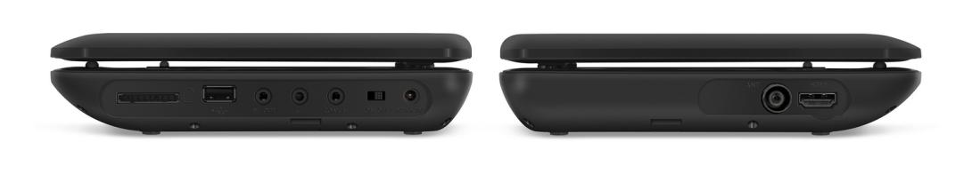 Prenosný dvd prehrávač, Vstavaná batéria Li-Ion s kapacitou 1 000 mAh, Príslušenstvo: Anténa, nabíjačka do auta, napájací adaptér, diaľkový ovládač, batéria, návod na obsluhu, Napájanie: 9 V/1,5 A DC, Rozmery hlavného prístroja: 275 × 108 × 235 mm, Hmotnosť: 1,37 kg
