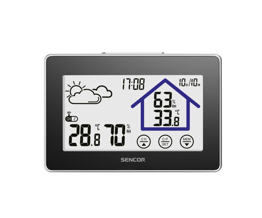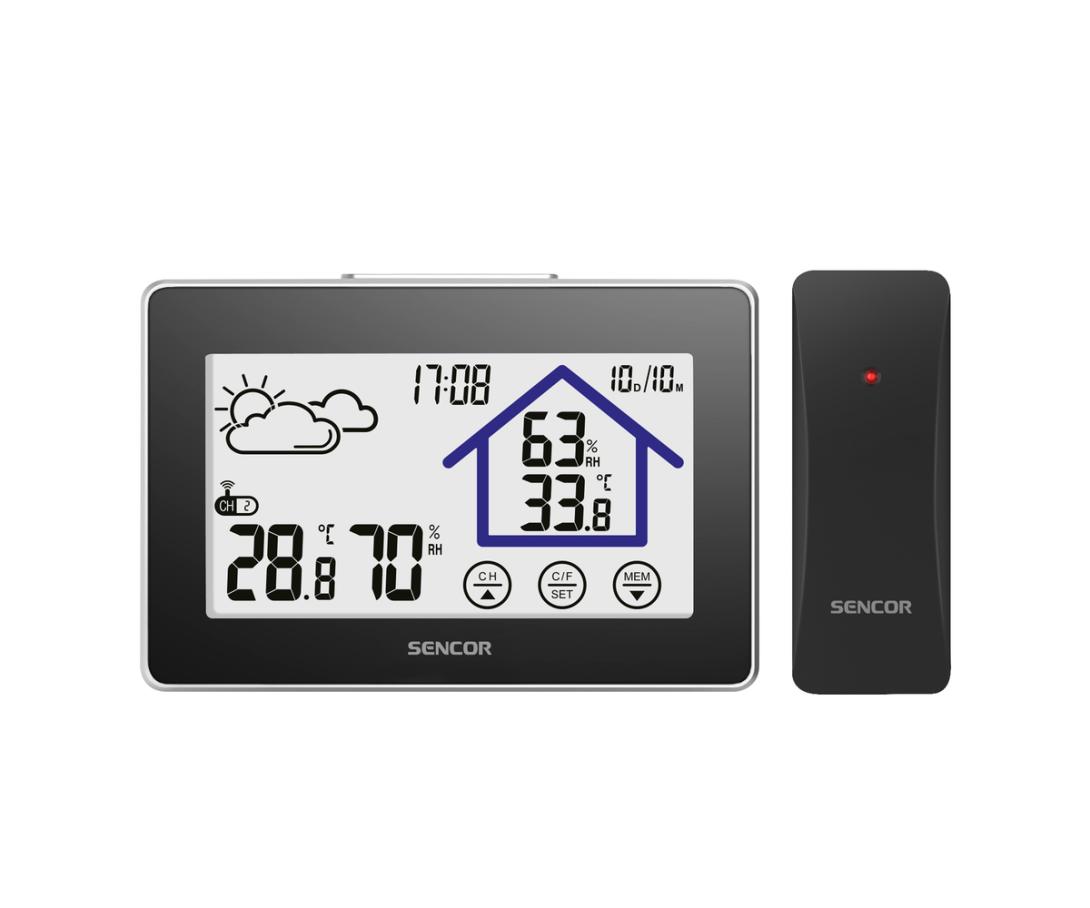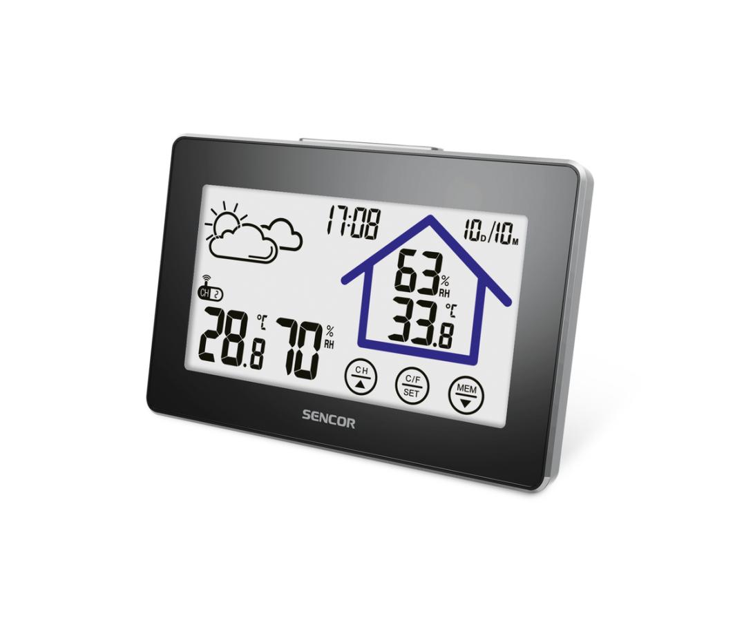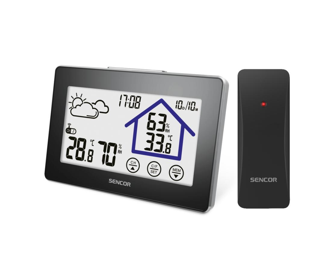 Meteorologická stanica, Rozsah merania vlhkosti 20 % až 95 % RV, 12-/24-hodinový formát, Frekvencia vysielania senzora: 433,92 MHz