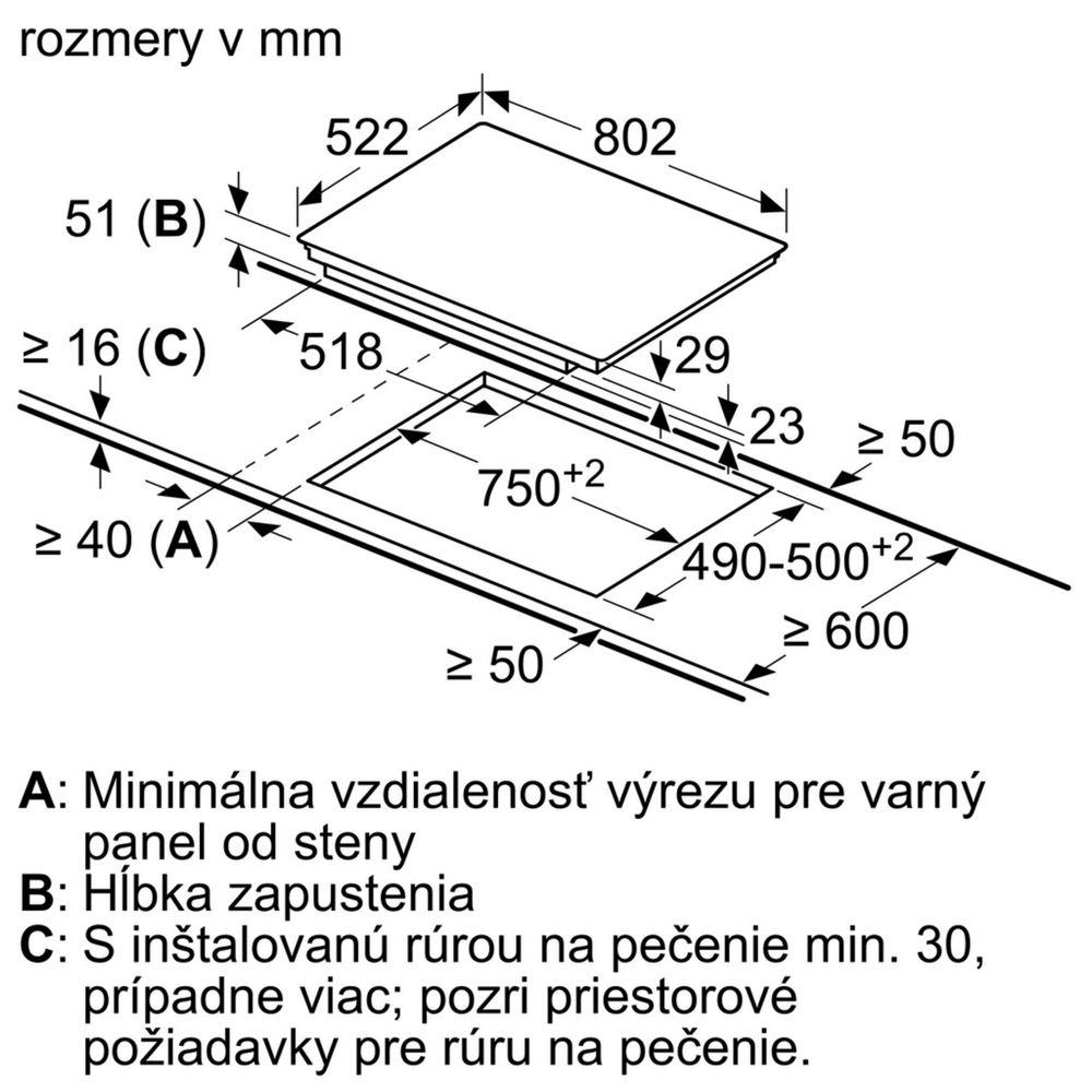 - rozmery pre inštaláciu (V x Š x H): 51 mm x 750 mm x 490 mm