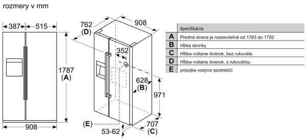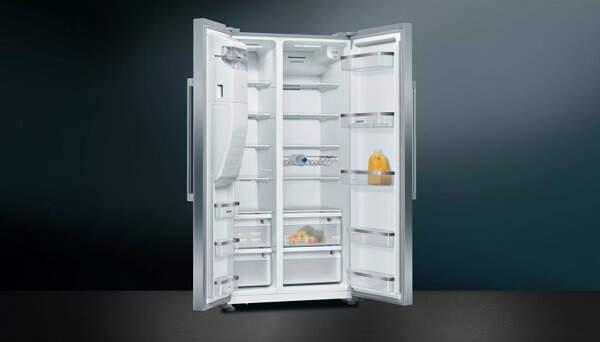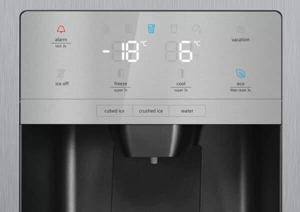 Americká chladnička disponuje mraziacim priestorom, ktorý sa nachádza na ľavej strane, ktorého čistý objem je 165 l. Mraziacia kapacita je 13 kg za 24 hod. a akumulačná doba pri poruche je 8 hod. Vo vnútri sa tiež nachádza 5 odkládacích plôch a 3 priehradky vo dverách. Súčasťou výbavy je tiež automatický výrobník ľadu, ktorý ocení pri horúcich letných dňoch.