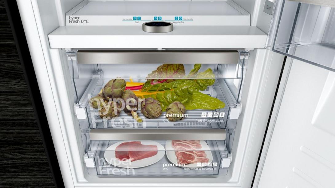 Užívajte si čerstvú chuť až trikrát dlhšie. Vďaka technológii hyperFresh premium 0 °C je to jednoduchšie než kedykoľvek predtým. Stačí pomocou moderného otočného regulátora zvoliť, či chcete uskladniť ovocie alebo zeleninu. Tým nastavíte optimálnu úroveň vlhkosti. Priehradka 0 °C zaručuje ideálnu teplotu pre uchovanie rýb a mäsa.