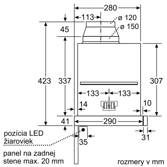 - odťahová rúra s O 150 mm (O 120 mm súčasťou)