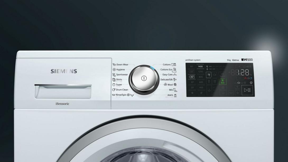 - tlačidlá touchControl: speedPerfect/varioSpeed, odloženie štartu, ochrana proti pokrčeniu, ecoPerfect, voľba škvŕn, základné nastavenie / detský zámok, pamäť, plákanie plus +1+2+3, stop plákania, štart/pauza s reload funkciou (možnosť doplnenia bielizne), teplota, predpierka, regulácia počtu otáčok a 24 hod. odloženie štartu