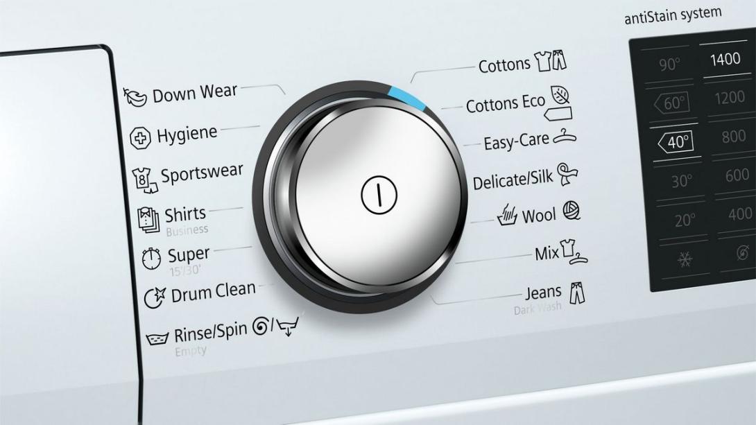 - špeciálne programy: plákanie/odstreďovanie/odčerpanie, super 15'/30', športové oblečenie, mix, košele/blúzky, jeans/tmavá bielizeň, čistenie bubna s funkciou pripomenutia, perie, hygiena, jemné/hodváb, vlna/ručné pranie