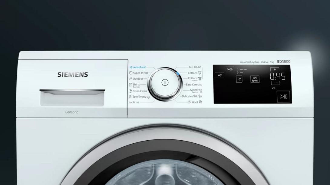 - tlačidlá touchControl: ochrana proti pokrčeniu, voľba škvŕn, základné nastavenie / detský zámok, pamäť, plákanie plus +1+2+3, stop plákania, štart/pauza s reload funkciou (možnosť doplnenia bielizne), teplota, varioSpeed, predpierka, regulácia počtu otáčok, voda a plákanie plus, odloženie štartu/bez odstreďovania