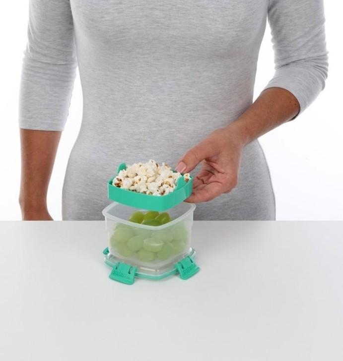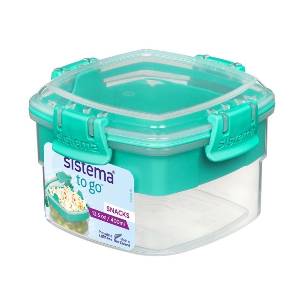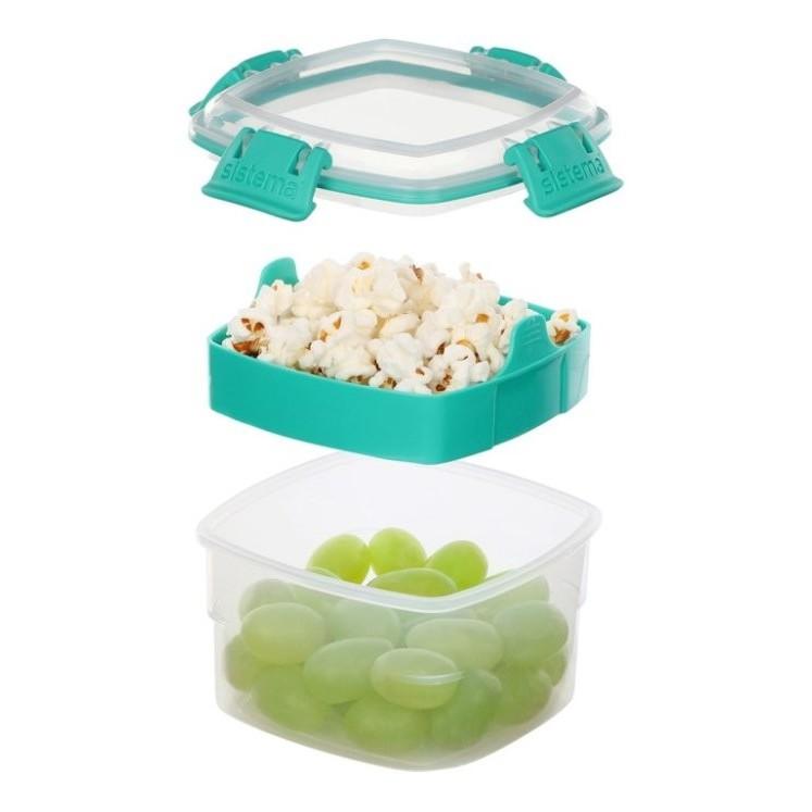 Sistema® 400 ml Snacks TO GO™ je skvelou voľbou pre všetkých, ktorí hľadajú praktický a štýlový spôsob, ako si vziať desiatu na cesty. Odnímateľný zásobník umožňuje oddelenie rôznych druhov potravín, takže si môžete vychutnať čerstvú a chutnú desiatu kedykoľvek a kdekoľvek. Stohovateľný tvar zaisťuje maximálne využitie priestoru v špajze, chladničke a mrazničke. Ľahko uzatvárateľné klipy Sistema® a pružné tesnenie udržujú potraviny dlhšie čerstvé.