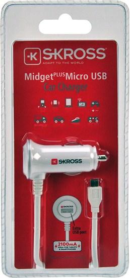USB nabíjací autoadaptér SKROSS Midget Plus, integrovaný kábel micro USB + 1x 2100mA výstup, DC 12V, miniaturný