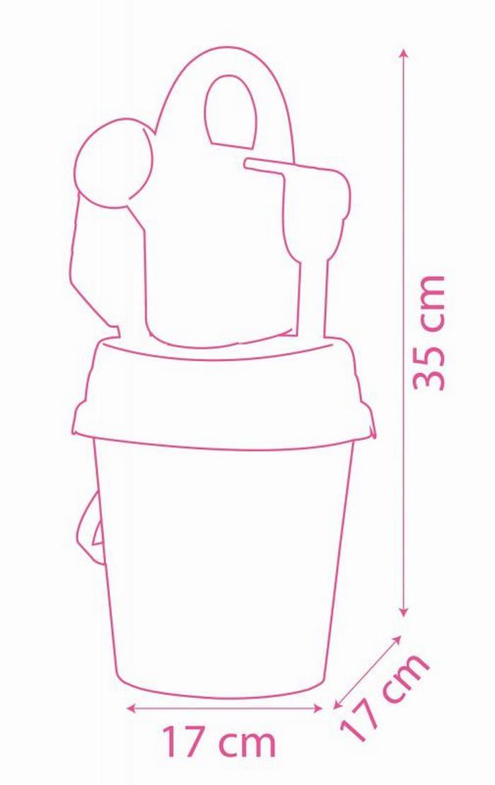 Vedierko Minnie, Set na piesok s obľúbenou myškou Minnie. Súčasťou je sitko, hrabličky, lopatka, formička na piesok v tvare srdiečka a kanvička. Priemer vedierka 17 cm. Výška vedierka 18 cm.