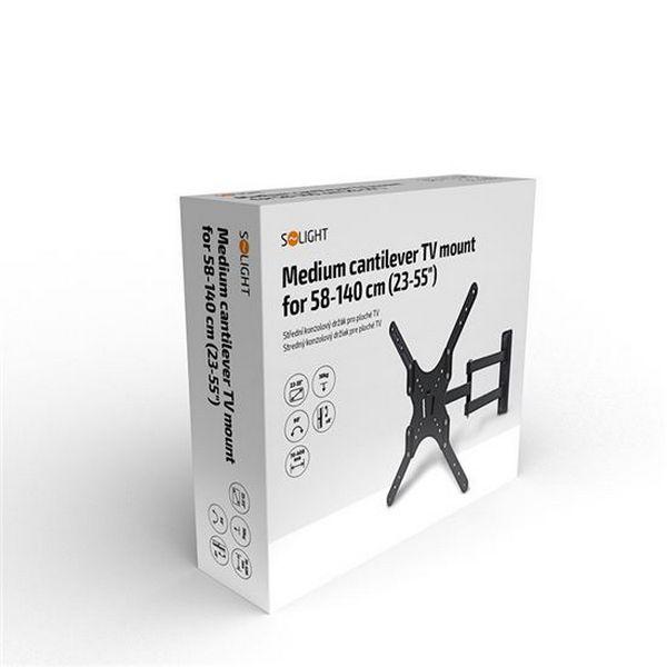 Konzolový držiak, pre všetky ploché TV s uhlopriečkou 58cm - 140cm (23'' - 55''), rozteč VESA: 75; 100; 200; 400, max. nosnosť: 30kg, profil od steny: 70 - 408mm, naklopenie: ± 8°