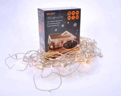 Vianočný záves, Solight LED vianočný záves, cencúle, 120 LED, 3m x 0,7m, prívod 6m, vonkajšie, teplé biele svetlo, pamäť, časovač