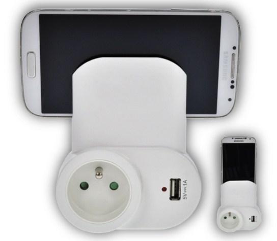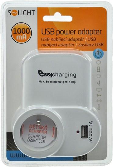 Solight USB nabíjací adaptér s priebežnou zásuvkou, 1000mA, držiak na telefón, biely