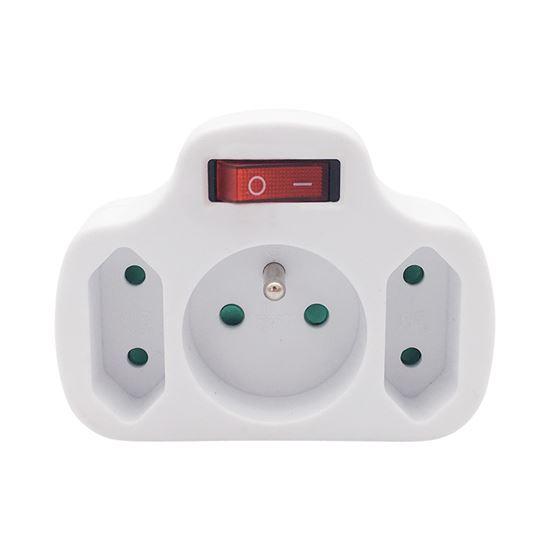 Rozbočovač, výstup 1x 10A + 2x 2,5A/230V =>max. 15A, vypínač