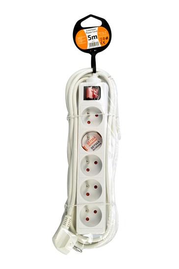 Predlžovací kábel, počet zásuviek: 5, prierez vodičov: 3 x 1mm2, typ kábla: H05VV-F3, lomená vidlica, farba: biela, dĺžka: 5m