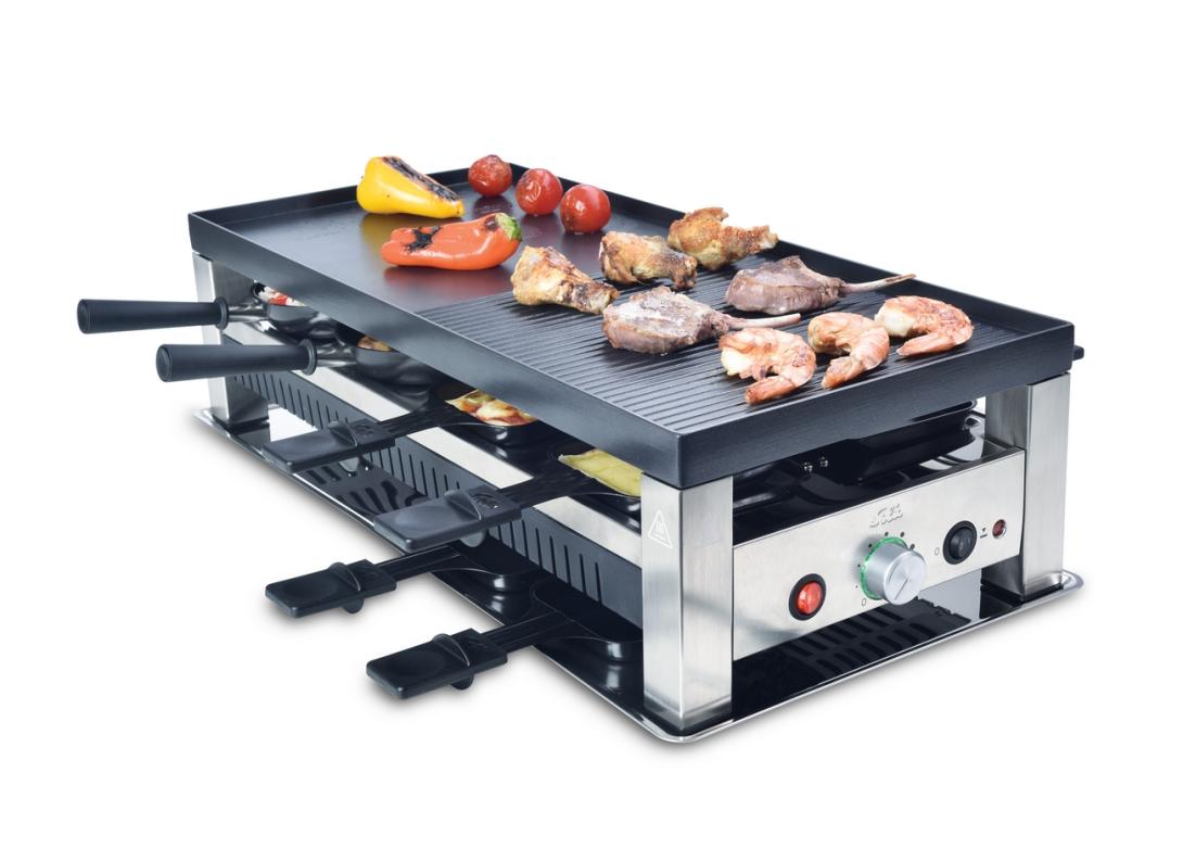 - Kombinácia stolného grilu, raclette, mini wok, mini pizze a mini palaciniek v jednom zábavnom prístroji.