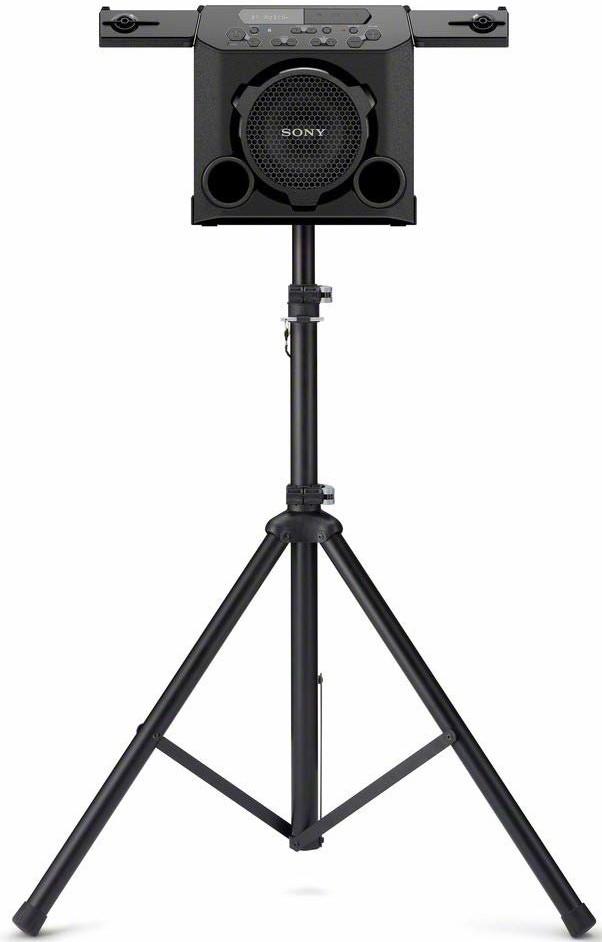 Vďaka vstavanému montážnemu otvoru sa môže zvukový systém GTK-PG10 umiestniť na reproduktorový statív, čím získa vyvýšenú pozíciu a zvuk sa tak môže šíriť medzi ľudí ešte efektívnejšie – či už sedia alebo stoja.