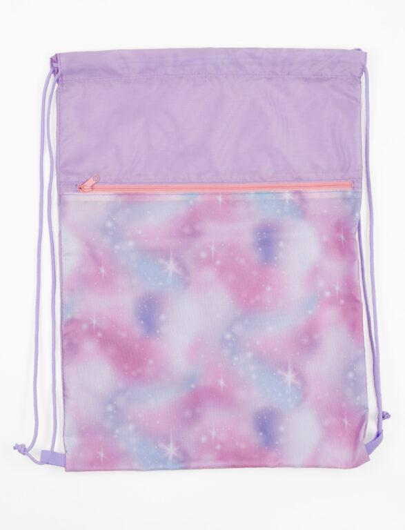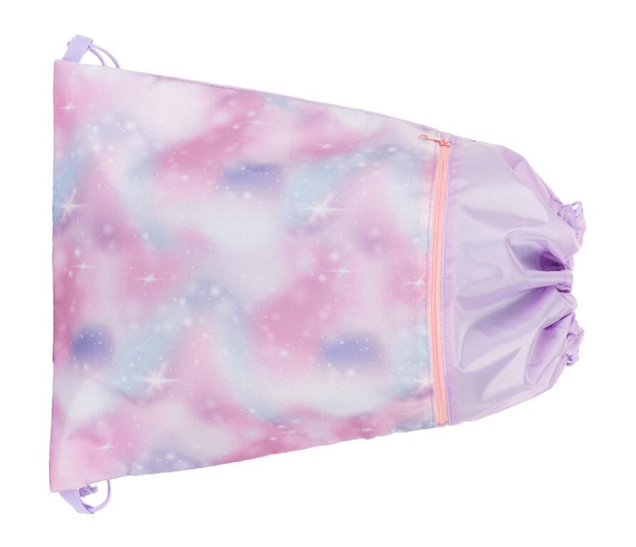 Zaťahovacia šnúrka spojená so spodnou časťou premení vrecko na malý batôžtek na chrbát.