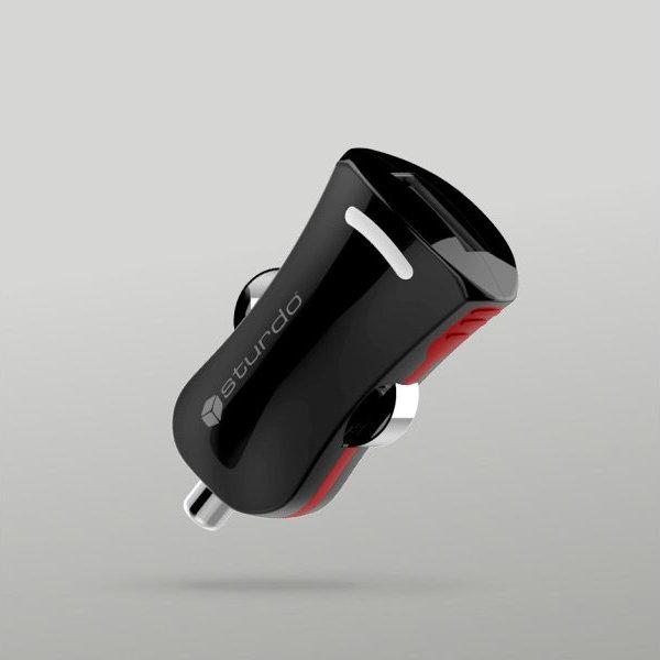 Univerzálna USB autonabíjačka Sturdo dizajnovej rady Pro Sport. Elegantné čierne prevedenie. Pre pohodlné nabíjanie smartfónov, tabletov, navigácií počas jazdy.