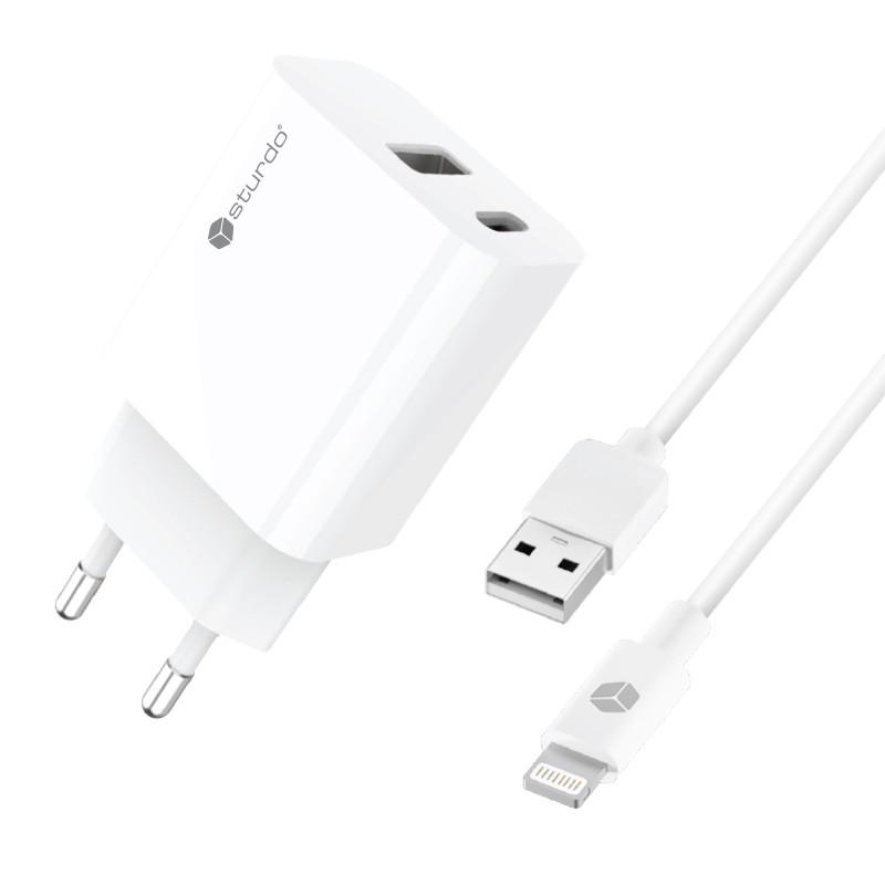 STURDO NSI-0083-STU-LIGHT BIELA 3A PD 20W+USB QC3.0 MFI KABEL SIET.