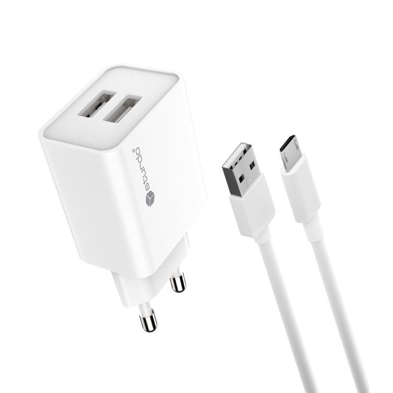 Sturdo sieťová nabíjačka 2,1A 2xUSB + Micro USB kábel, Biely