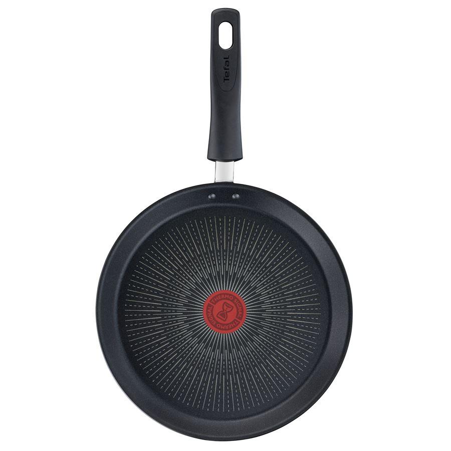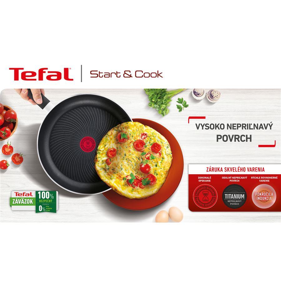 Panvica na palacinky Start&Cook umožňuje varenie bez napätia a stresu vďaka funkciám a materiálom, ktoré boli navrhnuté tak, aby vám pomohli vykúzliť raňajky, obed alebo večeru ako nikdy predtým. Táto vysoko nepriľnavá panvica na palacinky s vysoko účinným a odolným nepriľnavým povrchom Titanium má dlhú životnosť a ľahko sa čistí, takže poskytuje všetky praktické výhody nepriľnavého kuchynského riadu. Technológia Thermo-Signal vám dáva pri každom varení istotu dokonalého výsledku. Objavte túto nezameniteľnú panvicu na palacinky, ktorá je navrhnutá na prípravu dokonalých zlatistých lievancov a zároveň vám poslúži ako panvica na francúzske palacinky, na ktorej môžete usmažiť pravé francúzske sladké alebo slané palacinky. Tefal Start&Cook: Zdravé a lahodné domáce varenie nikdy nebolo také jednoduché.