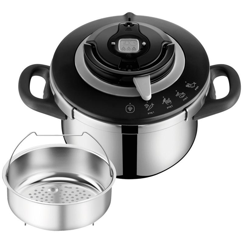Objavte tlakový hrniec Clipso+ CHEF so 4 špeciálnymi programami varenia pre dokonalú úpravu všetkých druhov surovín: zeleniny, obilnín/strukovín, mäsa a rýb. Vďaka ľahko otvárateľnému veku tlakového hrnca a inteligentnému automatickému časovaču pripravíte všetky svoje obľúbené recepty za chvíľu. Robustný, bezpečný, kompaktný a odolný tlakový hrniec Clipso+ CHEF vás nikdy nesklame!