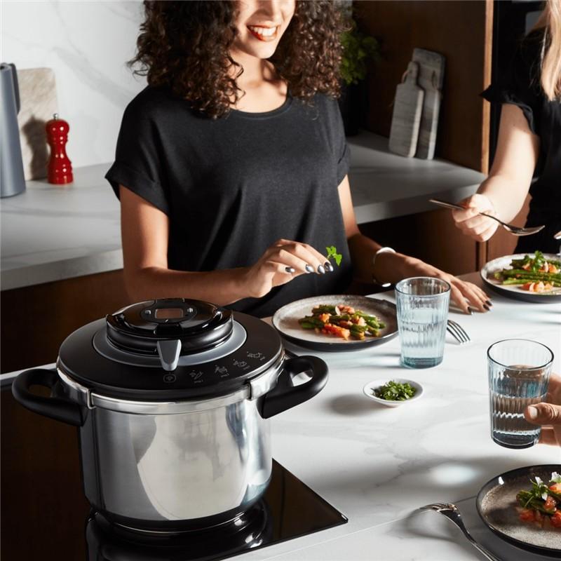 Aby ste sa pri varení v tlakovom hrnci nemuseli obávať, Tefal Clipso+ CHEF je vybavený 6-úrovňovým bezpečnostným systémom. Po dovarení a vypustení pary vám hrniec dá zvukové znamenie, že môžete otvoriť pokrievku. Tú môžete ľahko otvoriť aj zavrieť jednou rukou. Pripravte si doma poctivý vývar, lahodnú sviečkovú, rýchlo uvarte cícer na hummus, poduste zeleninu... jednoducho si pochutnajte!