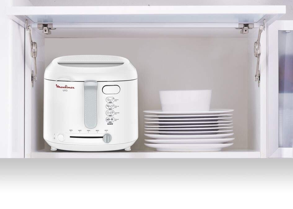 Ušetrite si miesto v kuchyni a varte pre celú rodinu! Elektrická fritéza Tefal Uno je kompaktnou fritézou s veľkou kapacitou pre všetkých vašich blízkych! Jej veľkorysá kapacita 1 kg ľahko vystačí pre štyri osoby, zatiaľ čo jej kompaktné rozmery a sklopná rukoväť šetrí miesto na kuchynskej linke i v kredenci - dá sa ľahko skladovať v akejkoľvek kuchyni. Fritéza Uno je vybavená pohodlnými funkciami, vrátane veľkého priezoru pre jednoduché sledovanie a automatického otvárania veka, a ďalej nastaviteľným termostatom (150 °C - 190 °C), ktorý ponúka skvelú flexibilitu pre smaženie všetkých druhov vynikajúcich jedál.
