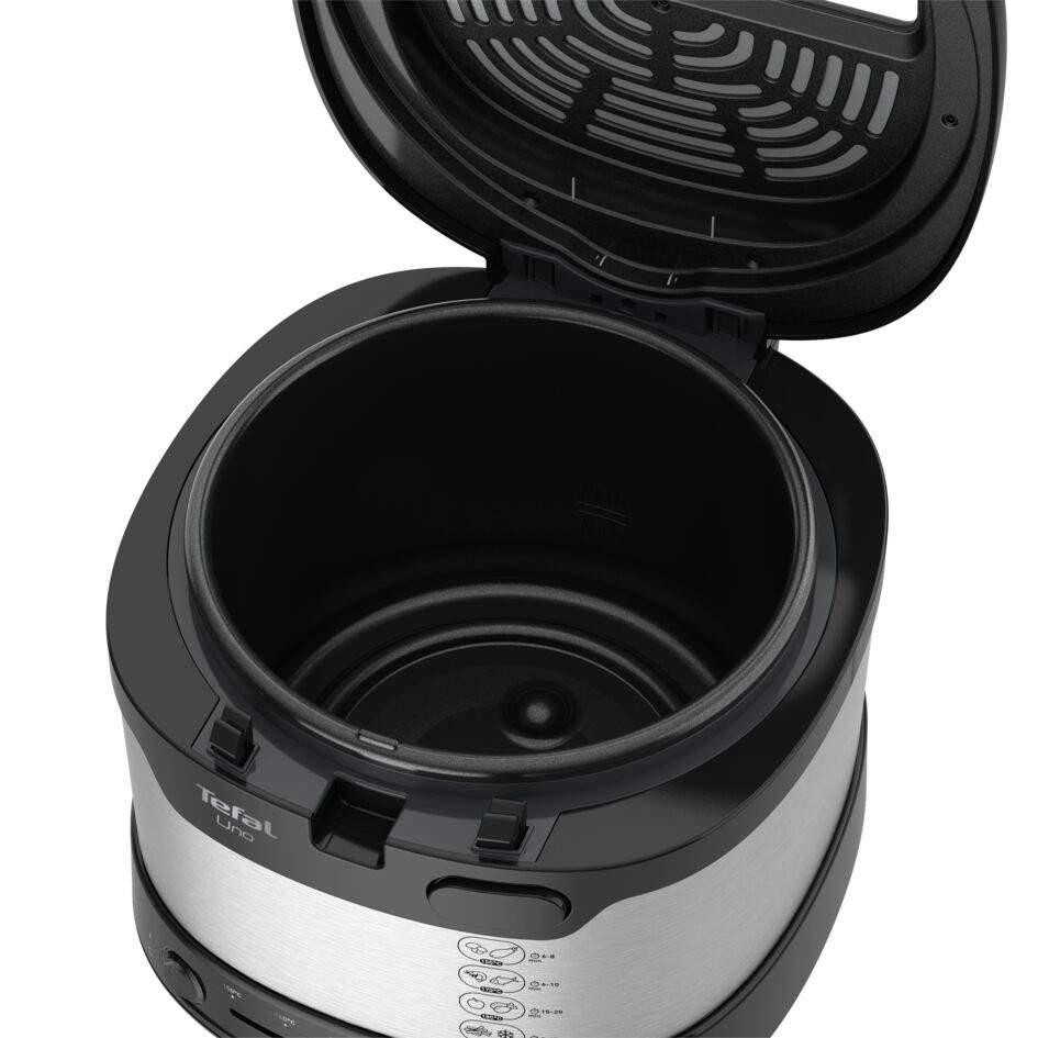Ušetrite si miesto v kuchyni a varte pre celú rodinu! Elektrická fritéza Tefal Uno je kompaktná fritéza s dostatočnou kapacitou pre všetkých vašich blízkych! Jej veľkorysá kapacita 1 kg ľahko vystačí pre štyri osoby, zatiaľ čo jej kompaktné rozmery a sklopná rukoväť šetrí miesto na kuchynskej linke i v kredenci - dá sa ľahko skladovať v akejkoľvek kuchyni. Elektrická fritéza Uno je vybavená praktickými funkciami, vrátane veľkého priezoru pre jednoduché sledovanie a automatického otvárania veka, a ďalej má tiež nastaviteľný termostat (150 °C - 190 °C), ktorý poskytuje skvelú flexibilitu pre smaženie všetkých druhov lahodných jedál.
