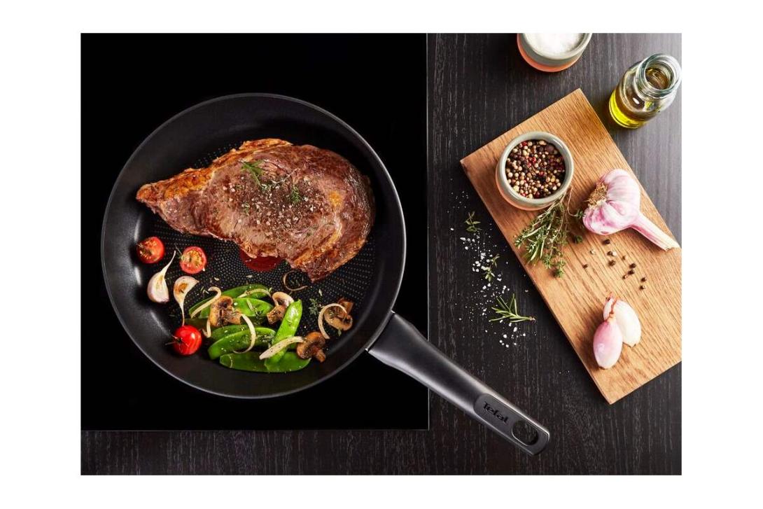 Panvici nechýba pre Tefal typický indikátor správnej teploty: inovatívny Thermo-Signal™ bod vám prezradí, kedy je ideálny čas vložiť na panvicu suroviny a pustiť sa do varenia. O rýchle nahriatie panvice sa stará silné indukčné dno Thermo-Fusion™. Riad je vhodný na indukciu, plyn, sklokeramiku aj elektrinu.