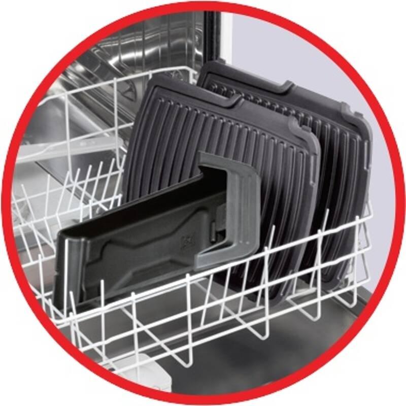Dosky sú potiahnuté nepriľnavým materiálom, čo výrazne uľahčí ich čistenie, ale predovšetkým vám umožní grilovať pokrmy zdravo bez pridania tuku navyše. Grilovacie dosky aj odkvapkávaciu tácku na šťavu a tuk možno vytiahnuť pre jednoduchú údržbu. Počas chodu zostáva rukoväť prístroja tepelne izolovaná pre bezpečnú manipuláciu bez rizika popálenia. Po vychladnutí prístroja ho môžete skladovať vo vertikálnej polohe pre úsporu miesta na poličke alebo v skrini.