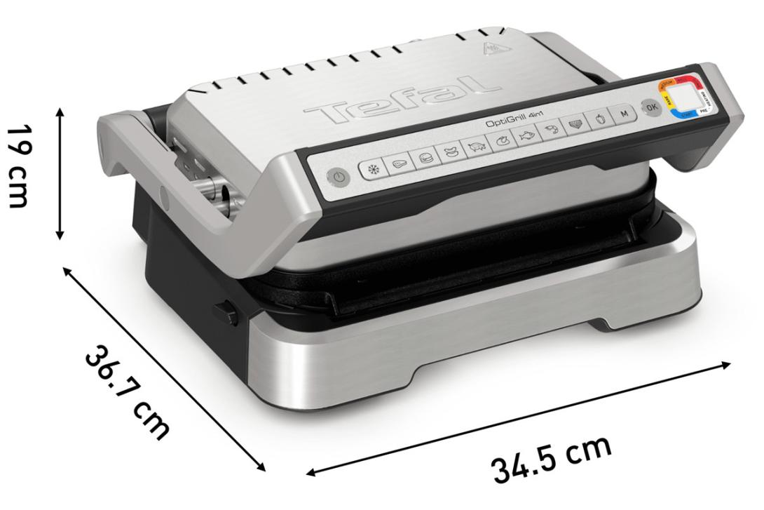 Elektrický gril OptiGrill 4v1 ponúka dokonalé výsledky grilovania presne podľa vášho priania – a ešte oveľa viac. Je kombináciou inteligentného grilu, barbecue, rúry a pomocníka pre prípravu kompletného menu v jednom praktickom prístroji pre každodenné varenie – od šťavnatého mäsa až po grilovanú zeleninu, pizzu, zapekané jedlá a iné. Má patentovanú technológiu, ktorá zmeria hrúbku mäsa, rýb alebo zeleniny na milimetre, vypočíta množstvo a automaticky nastaví dobu prípravy pre vždy dokonalé výsledky!