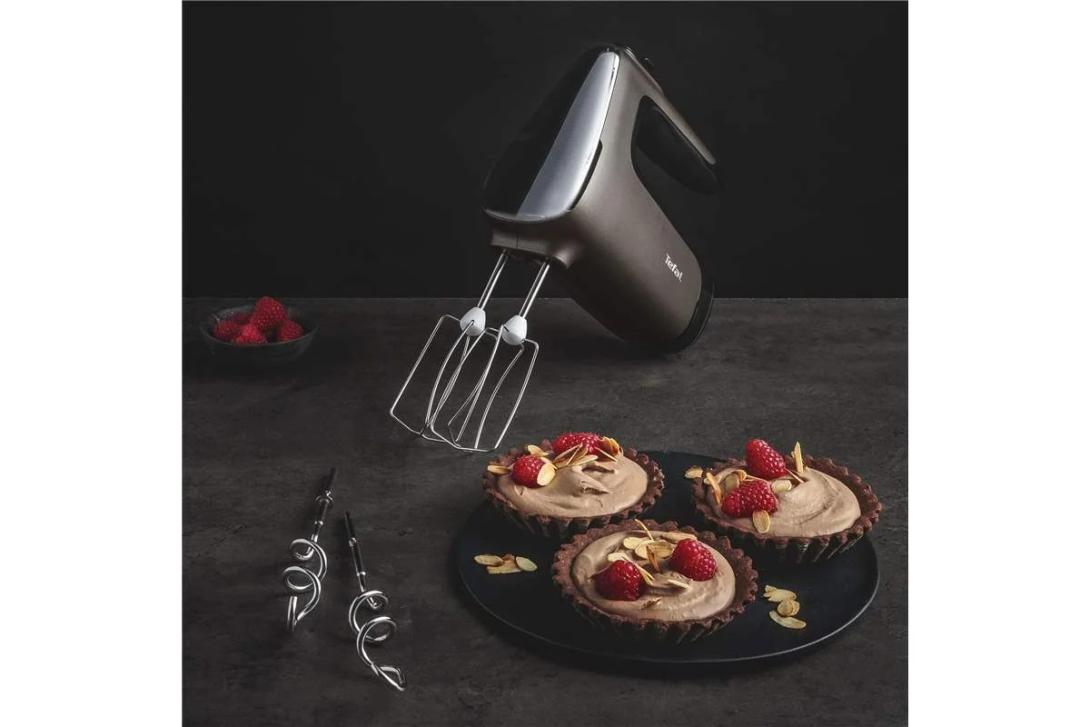 Tento čierny elegán vám bude k ruke, či už budete pripravovať liate cesto na buchtu, sneh do bábovky, šľahačku na pohár alebo kysnuté cesto na buchty. Vykúzlite s ním lahodnú zemiakovú kašu aj perfektné nátierky. V balení totiž nájdete ako mixovacie a šľahacie metly, tak hnetacie háky. Motor s príkonom 600 W si poradí s každou surovinou, a navyše je prístroj vybavený technológiou tlmenia zvuku. Pre čo najväčší komfort pri práci môžete pohodlne upravovať rýchlosť, Tefal Powermix Silent HT650E38 je vybavený variabilným prepínačom rýchlosti a funkciou turbo.