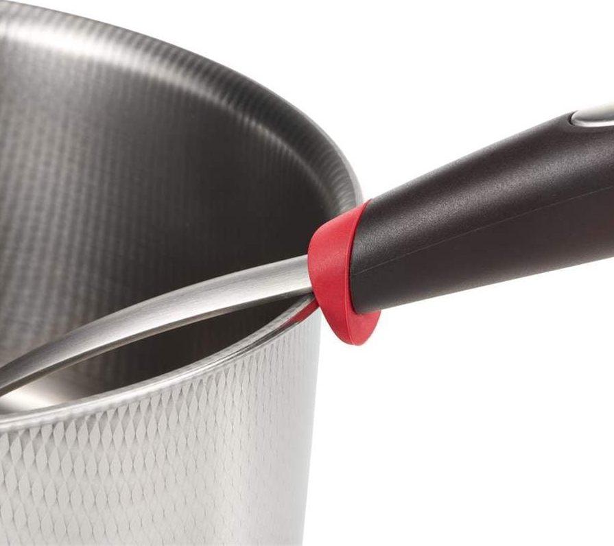 zabraňuje skĺznutiu naberačky do nádoby a chráni rukoväť pred horúcimi okrajmi hrncov a panvíc.