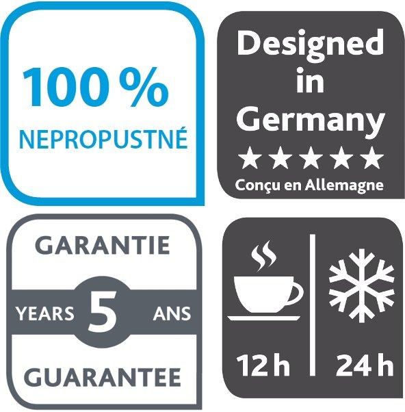 Vákuová termokanvica so sklenenou vnútornou nádobou, objem: 1 l, 100% tesniaca, 100% hermeticky uzatvorená, 5-vrstvová izolácia: 2 vrstvy skla, 2 vrstvy strieborného povlaku a vákuum