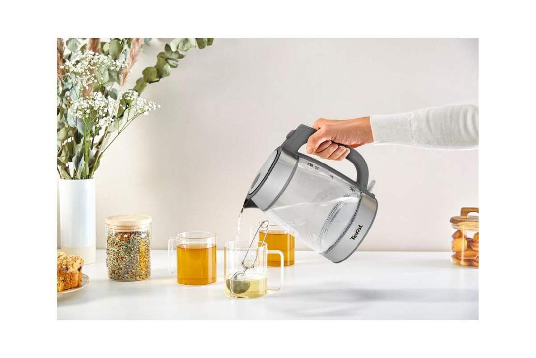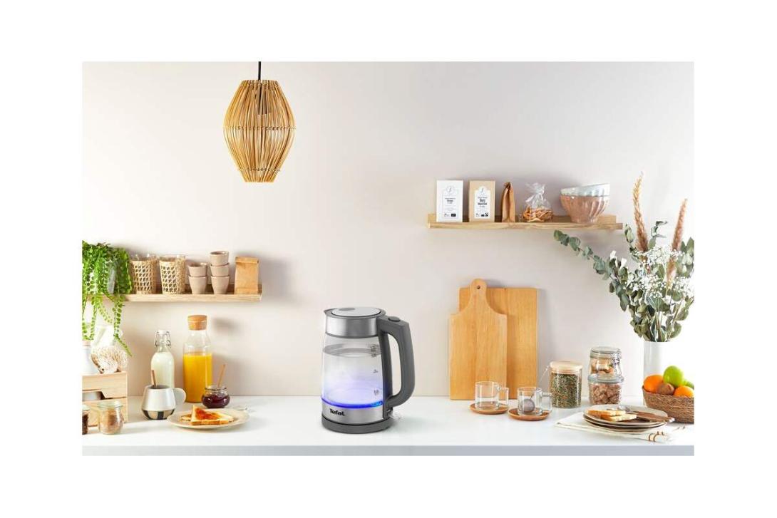 Kanvica Tefal Glass KI740B30 sa pýši moderným dizajnom, ktorému dominuje tepelne odolné sklo, ktoré je doplnené nerezovou oceľou. Za vzhľadom však rozhodne nezaostáva svojou funkčnosťou - kanvica disponuje štedrým objemom 1,7 litra a pre maximálne pohodlie prispôsobenou plne otočnou základňou. Čerešničkou na torte je potom odvápňovací filter, vďaka ktorému vám v horúcom čaji či lahodnej káve nebudú plávať drobné čiastočky vápenatých usadenín.