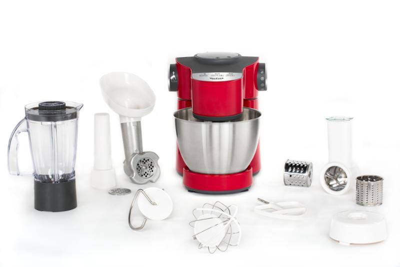 - Funkcie a príslušenstvo kuchynského robota: hnetenie, šľahanie, krájanie, strúhanie, mixér, mäsomlynček, strúhanie, miešanie