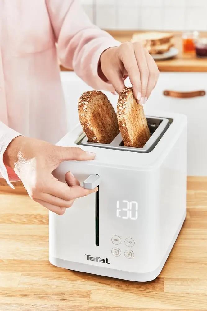 Hriankovač s príkonom 850 W na prípravu 2 hrianok zároveň. Tefal TT693110 Sense 2S ponúka 7 stupňov intenzity opekania, 3 samostatné funkcie pre jednoduché ovládanie jedným dotykom a variabilnú šírku otvoru pre automatické zarovnanie chleba na stred. Páka s vysokým zdvihom pre ľahké vybratie hrianky.