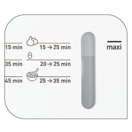 Tento parný hrniec s dvomi nádobami sa ľahko skladuje, pretože nádoby je možné usporiadať hore dnom na základňu a zabezpečiť tak kompaktnú veľkosť. Časovač s automatickým vypnutím poskytuje jednoduché používanie. Do parného hrnca možno počas varenia kedykoľvek ľahko dopĺňať vodu, hladina vody je navyše vždy vidieť. 60-minútový mechanický časovač so zvukovým upozornením signalizuje, keď je jedlo hotové. Viditeľný ukazovateľ hladiny vody, 2 stohovateľné nádoby, objem 6 litrov.