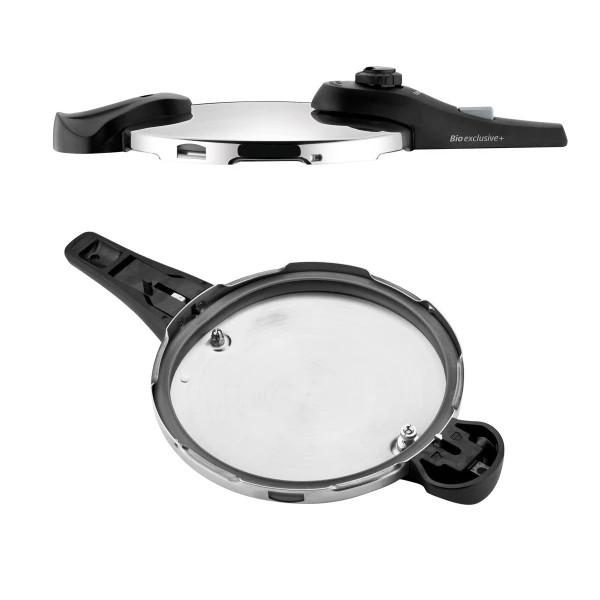 Tlakový hrniec BIO EXCLUSIVE+ je vyrobený z prvotriednej nehrdzavejúcej ocele, umožňuje varenie pri nízkom alebo vysokom tlaku, je ideálny na rýchlu a súčasne šetrnú prípravu pokrmov. Tlakový hrniec je vybavený 4 poistkami pre bezpečné použitie a vybavený masívnymi rukoväťami. Trojvrstvové sendvičové dno je vhodné pre všetky typy sporákov - plynové, elektrické, sklokeramické a indukčné. 5 rokov záruka.