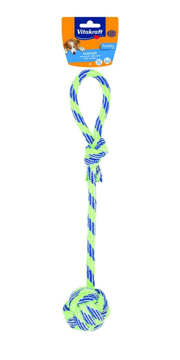 Hračka pre psa, Hračka uzlova loptička na šnure, cca 40cm. Hračka pre psov. Pred použitím sa uistite, že hračka nie je poškodená alebo nechýba niektorá z jej časti. Nevhodné pre deti do 3 rokov. VAROVANIE: z hygienických dôvodov nevkladať do úst.